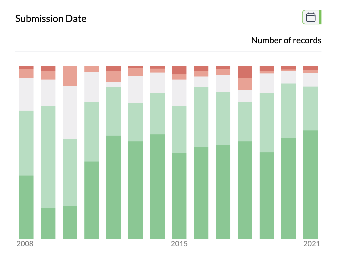 - Date + value — e.g. count or total by day, week, month, quarter, year.