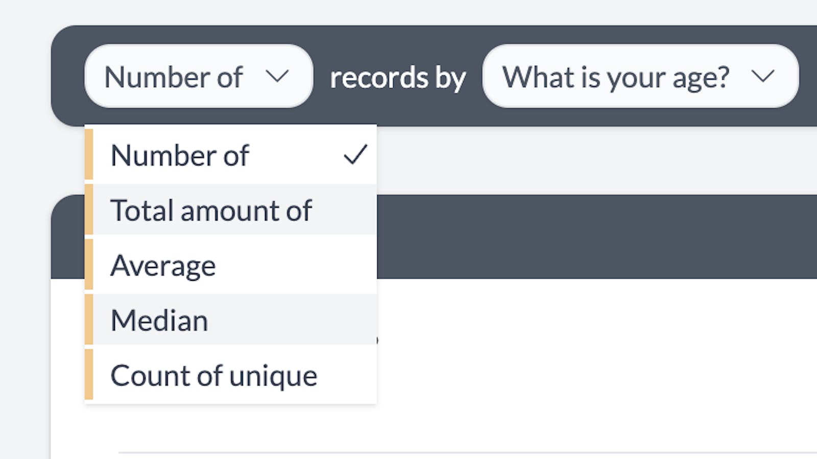 Once you select an aggregation type, AddMaple will add another dropdown allowing you to select your aggregation column.