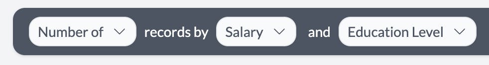 In this example we are exploring a salary dataset and have pivoted by **Salary **and Education Level