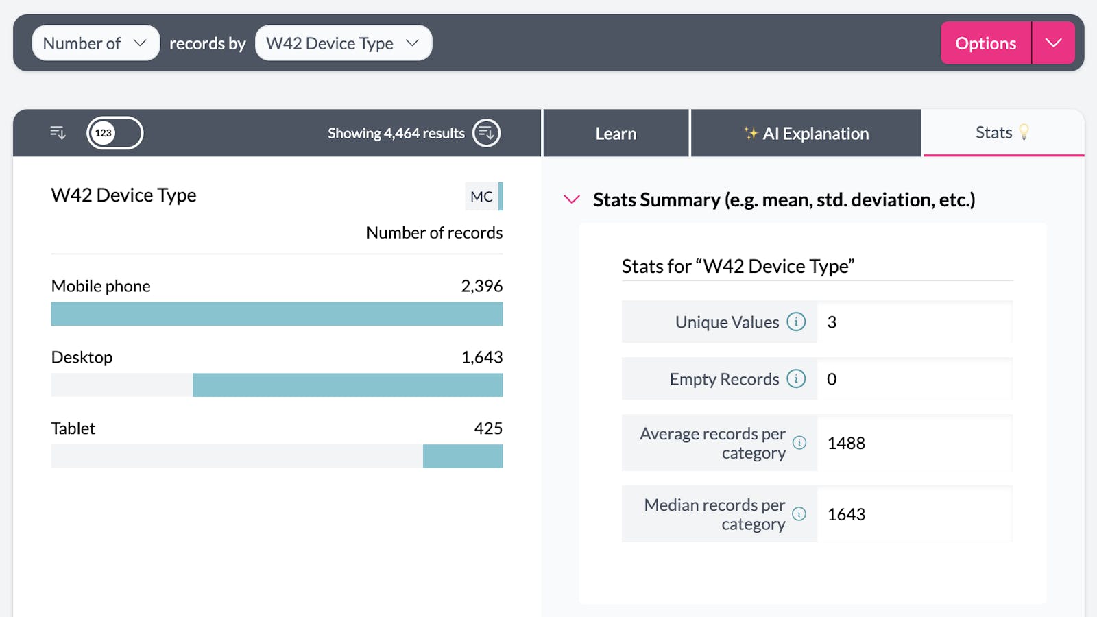 This is the main categorical column type that we have in AddMaple. It will show up with turquoise bars in the chart dashboard Multiple Choice columns on the Chart Dashboard have turquoise bars, you can click on the tile to expand.